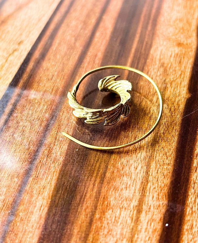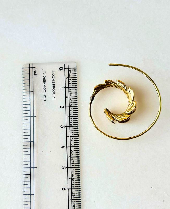Elegant brass hoop earrings crafted in a spiral leaf design. Lightweight and beautifully detailed, perfect for both boho and classic styles.