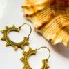 Bold tribal-style earrings in antique gold tone, featuring detailed dotted accents and ornamental outer beading for a rich ethnic look.