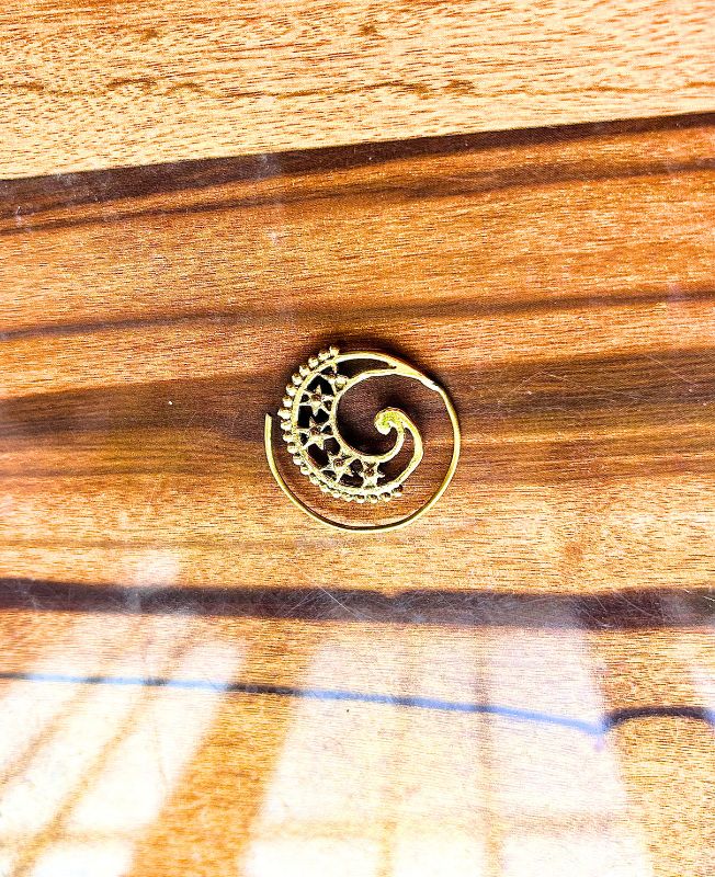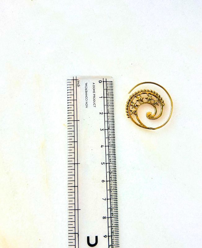This exquisite spiral filigree earring is a stunning example of traditional brass craftsmanship. The delicate swirl pattern forms a balanced and artistic spiral that reflects both simplicity and grace. Handcrafted with attention to detail, the earring features tiny ornamental textures that enhance its organic, free-flowing design.