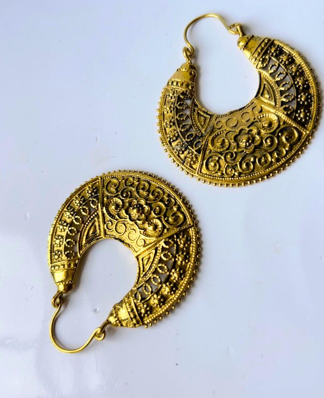5/20 Pairs Statement Ornate Hoop Brass Earrings