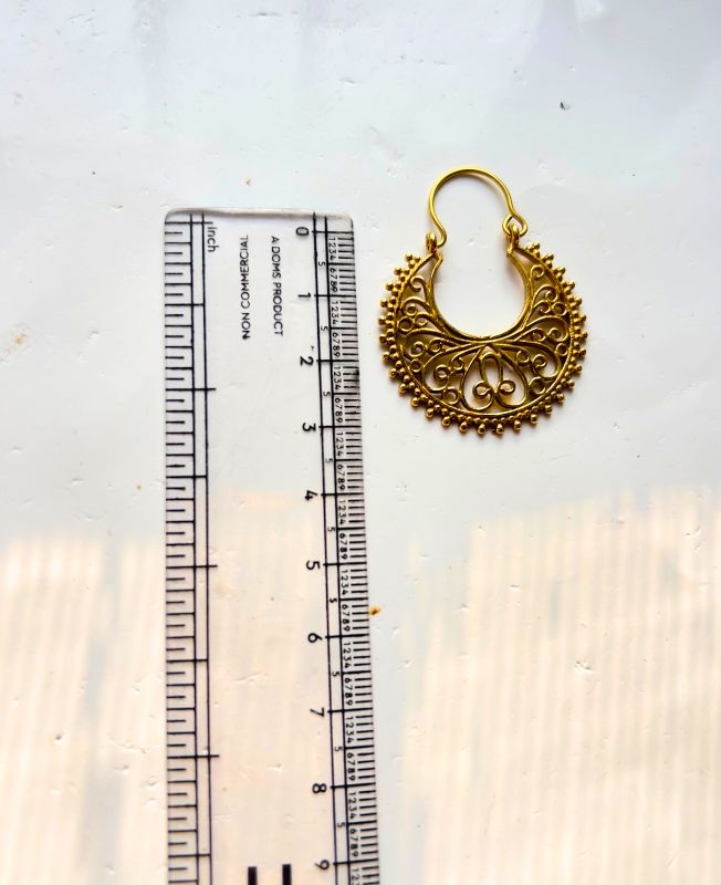 Pair of intricately designed antique brass hoop charms, perfect for earrings, boho chic, pendants, or ethnic jewelry creations.
