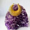 Step into timeless tradition with these antique gold crescent hoop earrings, featuring fine etched detailing inspired by tribal art and ancient patterns. Designed to make a statement, they blend heritage with bold bohemian aesthetics. Each piece is crafted with precision, highlighting a symmetrical layered design with floral and dotted motifs.