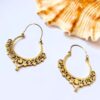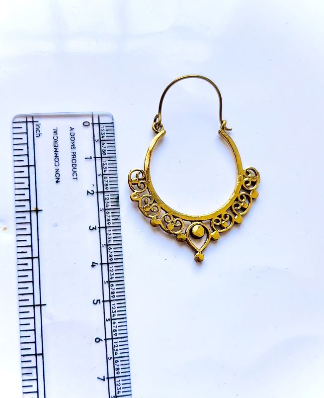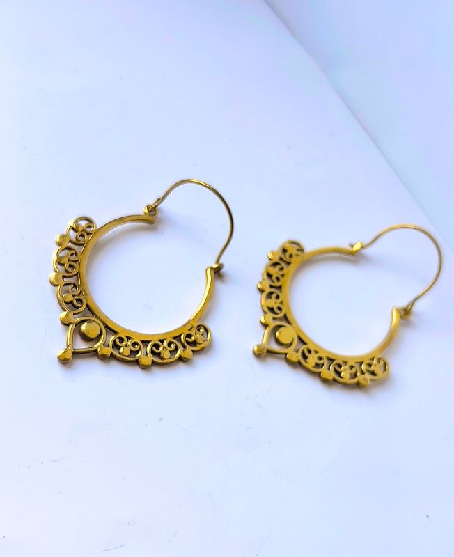 Elegant traditional-style gold-plated brass hoop with intricate filigree scrollwork and drop accent.