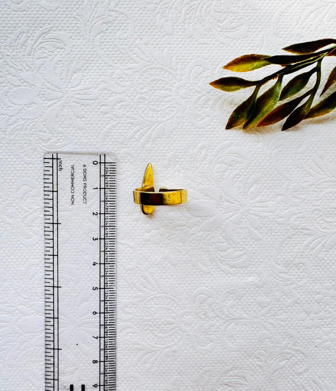 This handcrafted ring combines organic flow with modern geometry, forming an elegant and distinctive silhouette. Made with polished brass, the piece reflects a warm golden tone and minimalist aesthetic, ideal for modern boho or artistic jewelry lines.