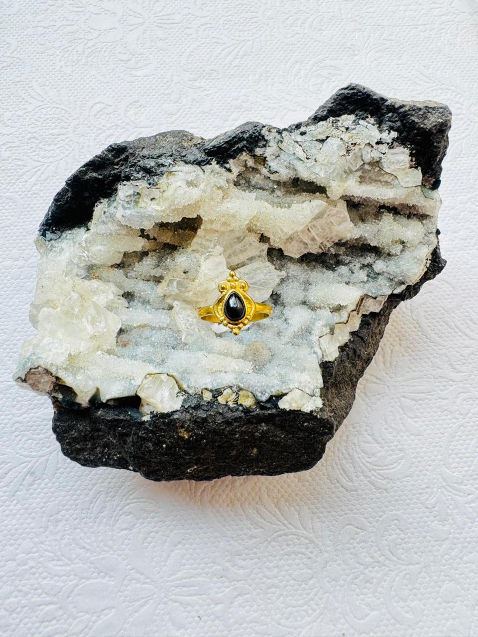 Elegant handmade brass ring featuring a deep black onyx stone. Perfect for a touch of boho charm and grounding energy.