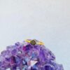 A delicate gold-colored ring featuring a small, flat circular face with an engraved concentric circle target pattern.
