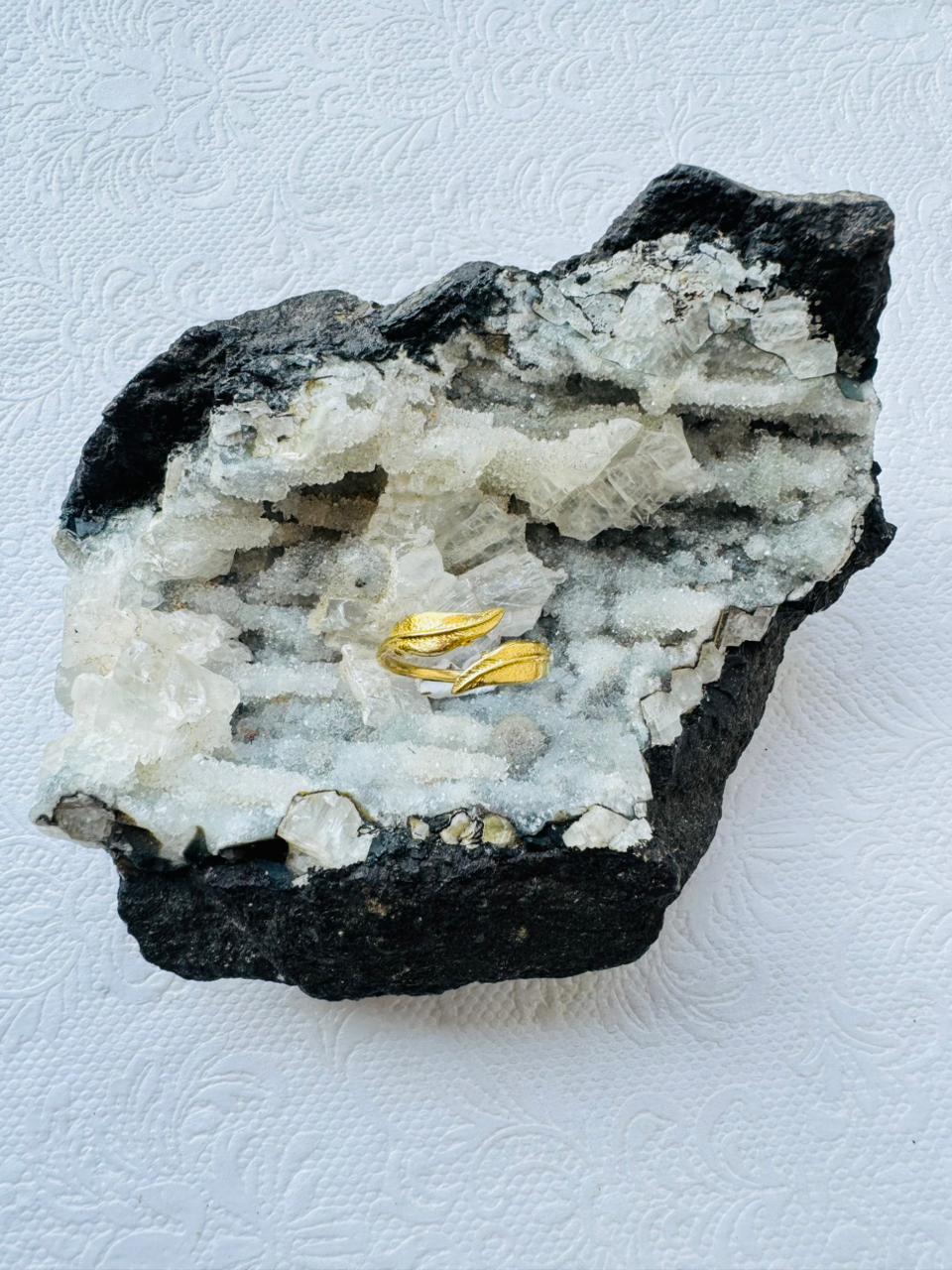 Embrace nature’s elegance with the Twin Leaf brass ring. The design features two slender, textured leaves with fine vein details that curve toward each other in a graceful wrap. Crafted from polished brass, this lightweight and adjustable piece is perfect for layering with other rings or wearing alone for a subtle, earthy touch.