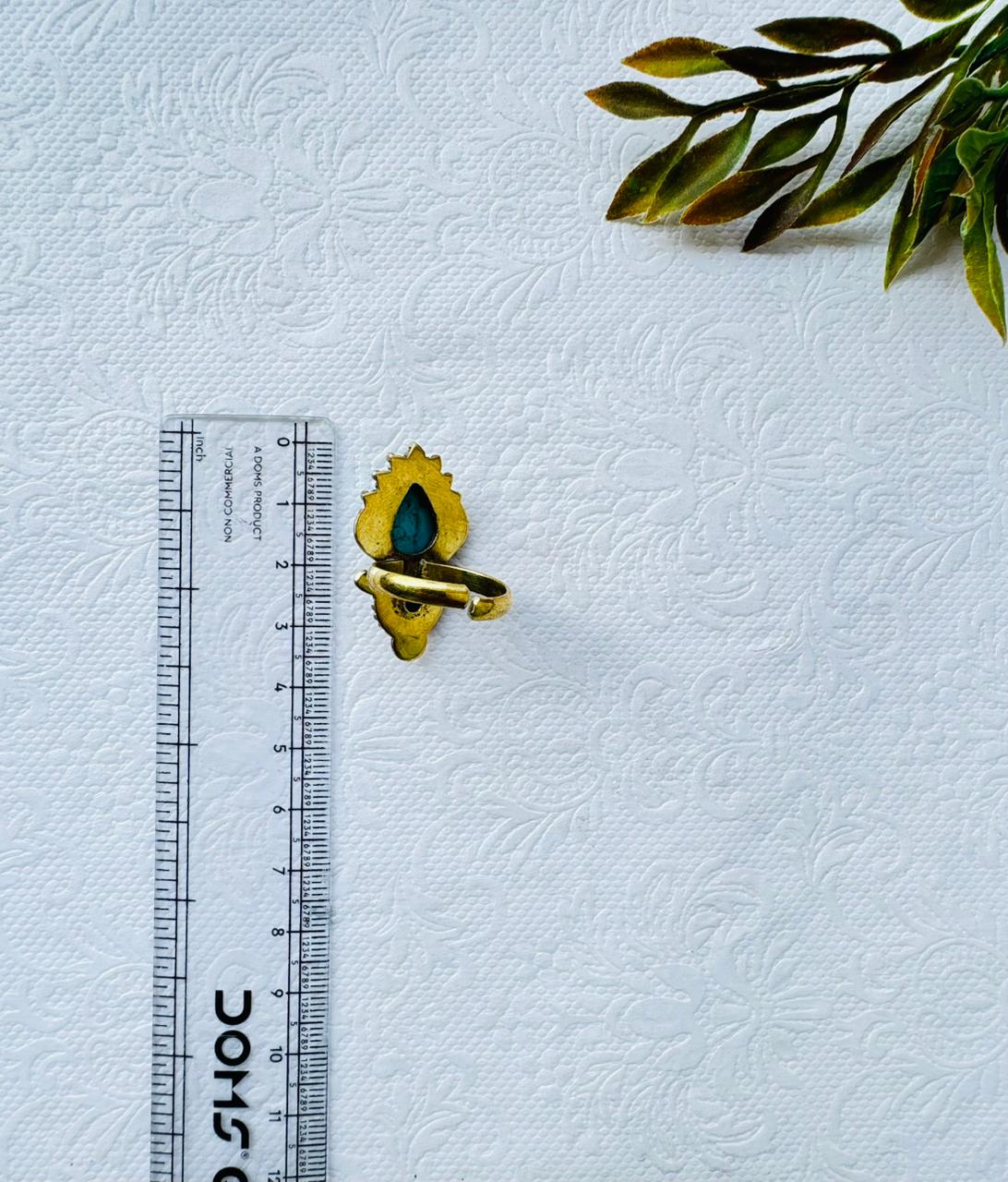 Brass Drop Stone Turquoise Ring with Intricate Work