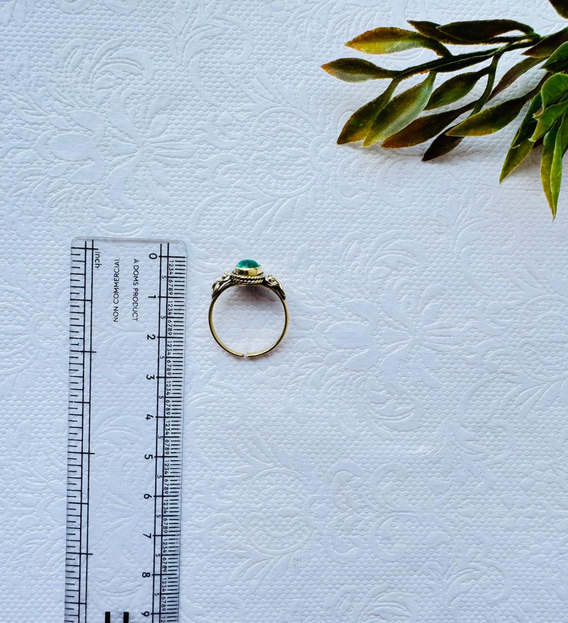 Brass Green Malachite Stone Ring with Matte Finish