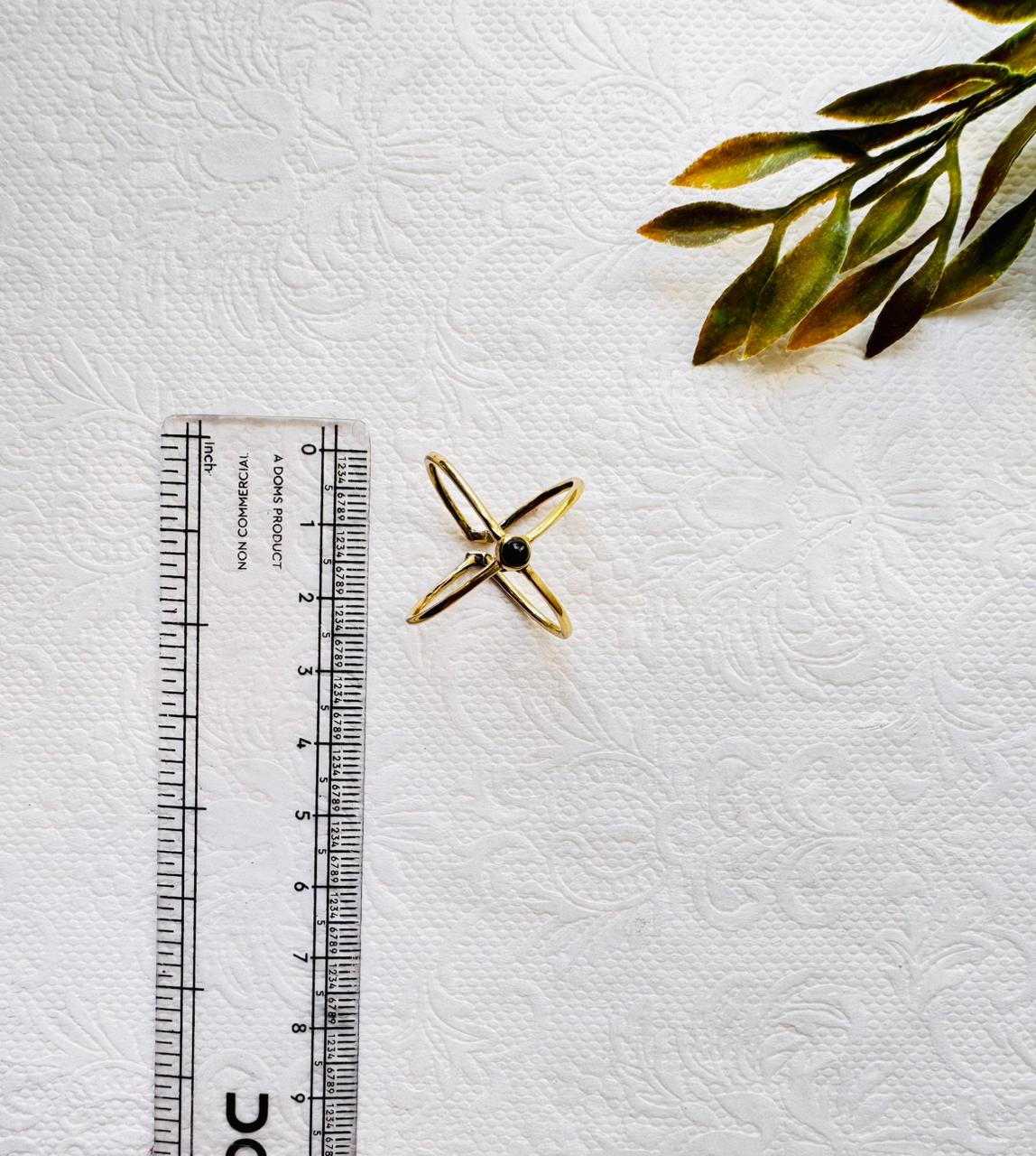 Elegant handmade brass ring featuring an open heart design and a small black gemstone accent. Perfect for adding a touch of boho charm to any outfit.