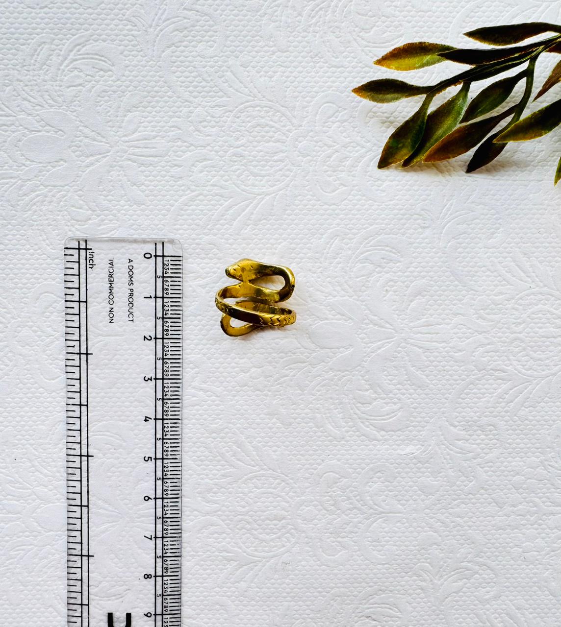 Intricately handcrafted brass snake ring featuring a coiled serpent design, symbolizing transformation, power, and protection. Adjustable and perfect for bohemian, gothic, or tribal-inspired jewelry collections.