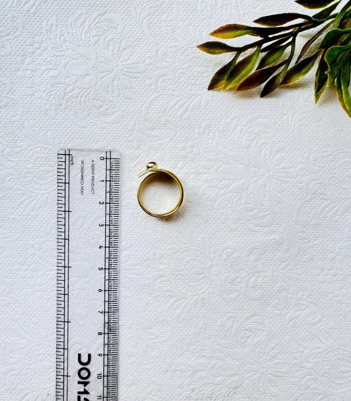 Brass Statement Adjustable Ring with Red Stone