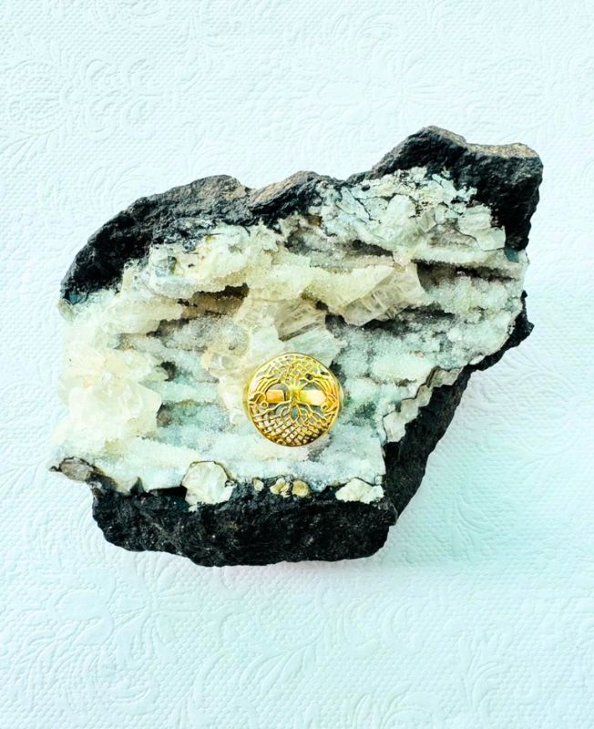 Brass Tree Of Life Spiral Brass Ring with Stone Accent