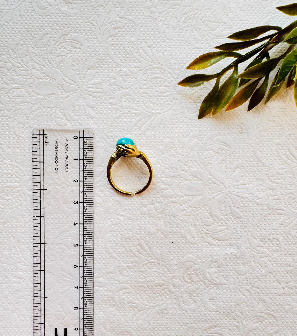 Brass Turquoise Adjustable Ring with Gemstone Stone