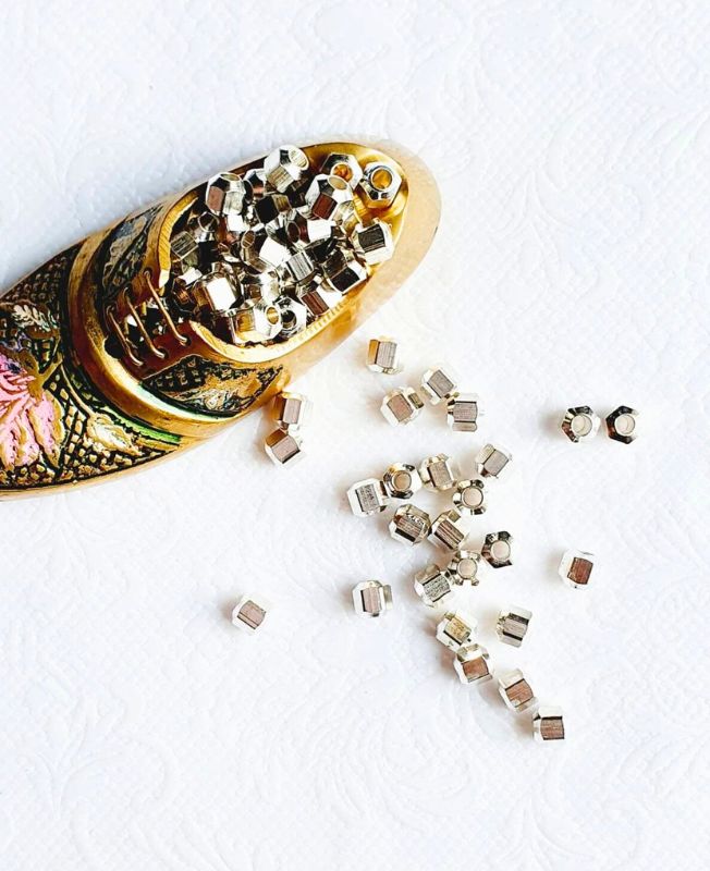 Silver-filled Geometric Brass Beads for Micro macrame & Jewelry making