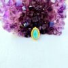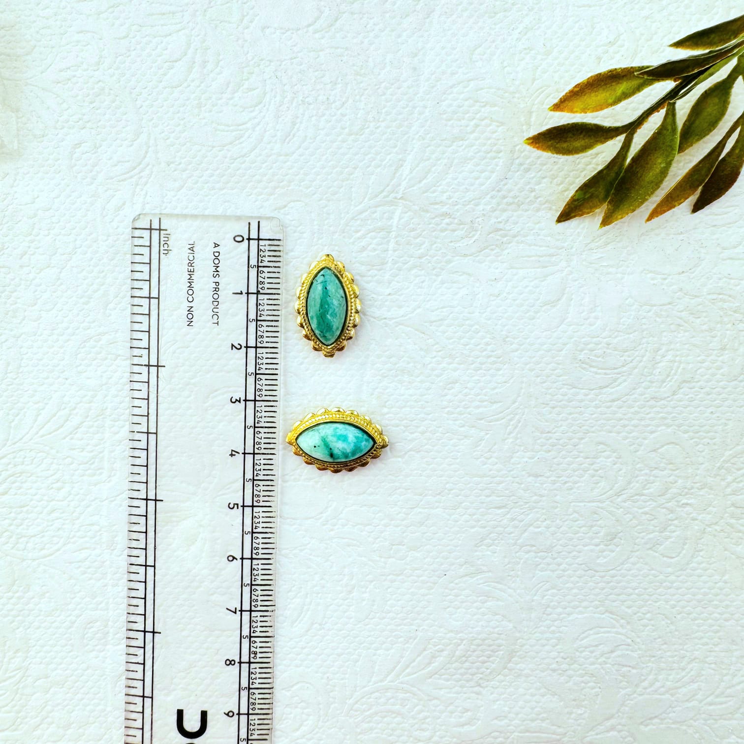 Elegant marquise shaped brass gold toned settings with fine grooved edges, featuring natural Amazonite stone
