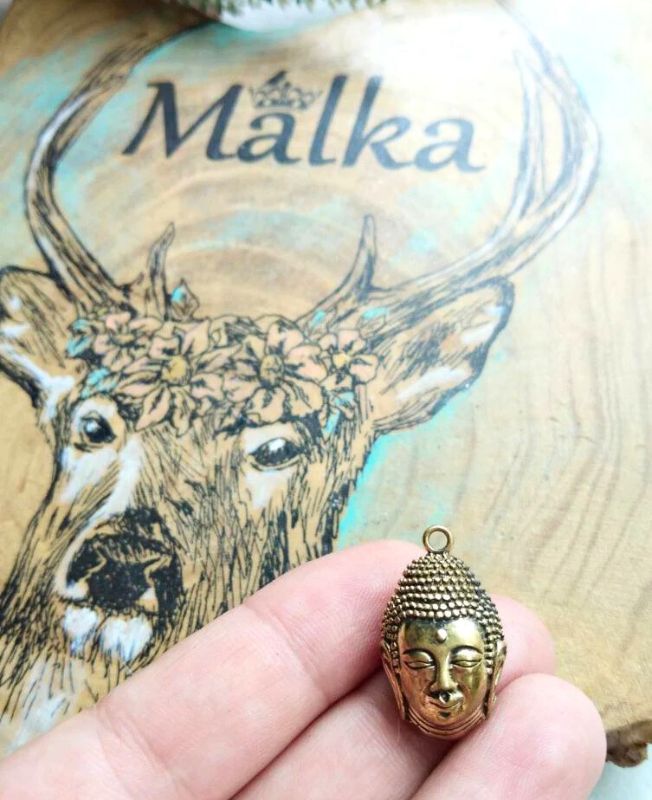 Made from solid brass, the charm is durable yet lightweight, and its antique golden finish develops character over time. Whether used in personal spiritual work or gifted as a symbol of peace, this Buddha head charm is a striking and thoughtful addition to your creative collection.