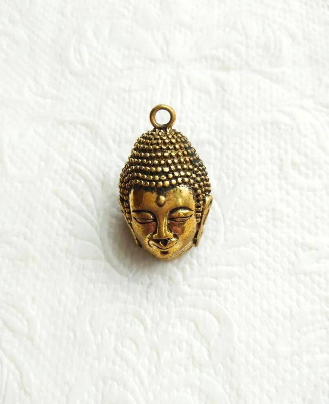 A detailed brass charm shaped as a serene Buddha head, perfect for spiritual jewelry, pendants, malas, or macrame projects.