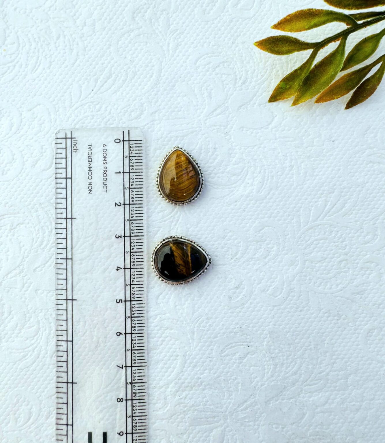 - Materials: Brass alloy base- silver filled with natural Tiger Eye stone
