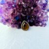 These handcrafted teardrop grooves feature natural Tiger Eye gemstones set in solid brass with a delicately dotted border. Each piece displays the distinctive golden-brown shimmer of Tiger Eye, offering a natural earthy beauty ideal for jewelry makers and designers. The grooves are smooth at the back and slightly raised around the gem, allowing easy attachment in metalwork, macramé, or wire wrapping.