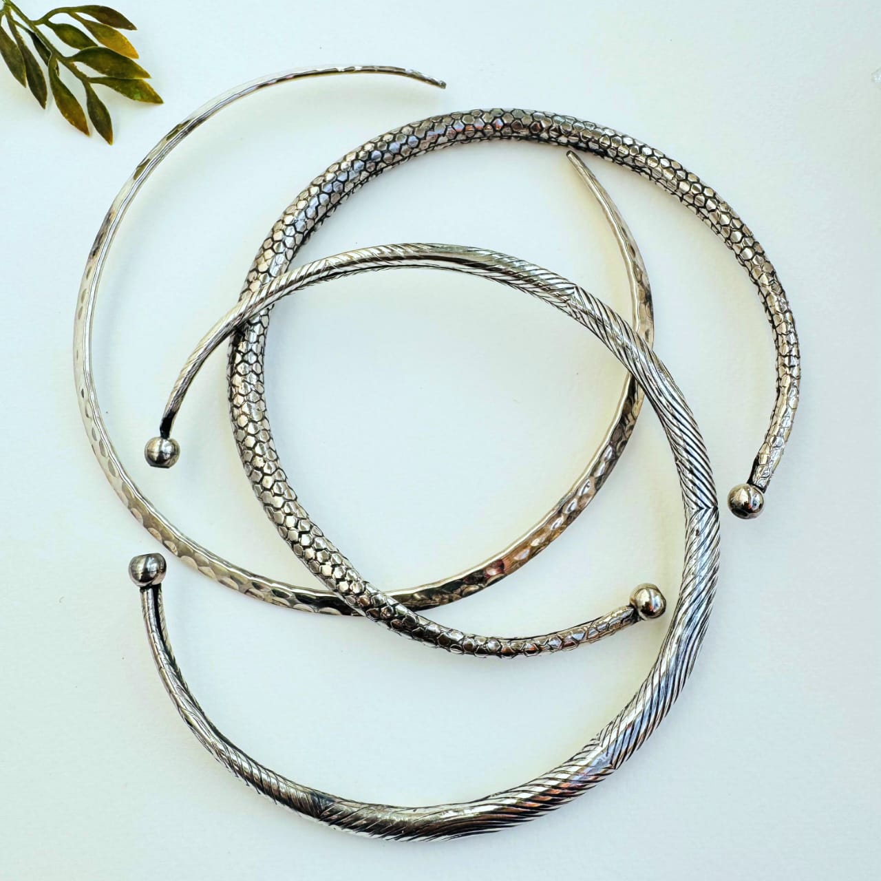 Boho Etched Silver Toned Brass Choker Set – Mixed Designs, Set of 4