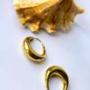 This bold crescent hoop earring is a timeless accessory crafted in a sleek, polished gold-tone finish. The rounded crescent design adds volume without the weight, making it both comfortable and stylish for daily wear or special occasions.