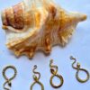 This charming piece showcases a unique snake pendant, coiled into an elegant loop or infinity-inspired shape. Some versions feature intricate scale-like textures while others offer a polished minimalist finish. Its small size and golden sheen make it perfect for delicate jewelry, earrings, or symbolic additions to bracelets and necklaces.