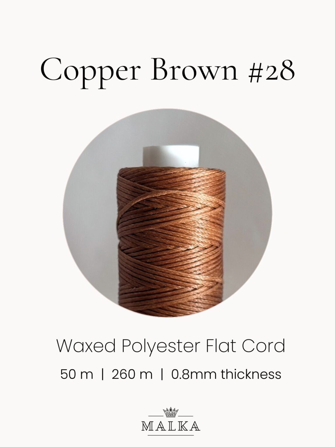 0.8mm Flat Waxed Macrame Cord – Copper Brown (No. 28)