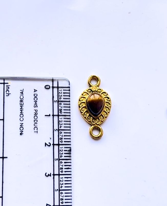 Elegant teardrop-shaped natural stone set in a decorative antique brass frame with dual side loops for easy attachment in bracelets, necklaces, or earrings.