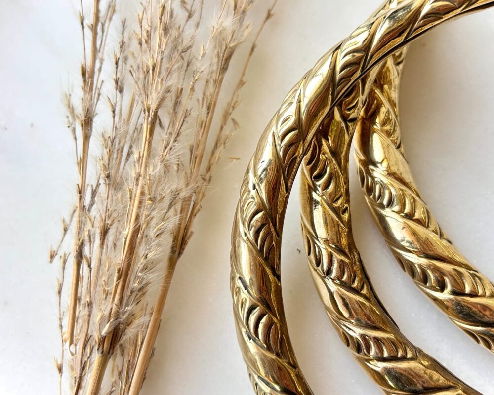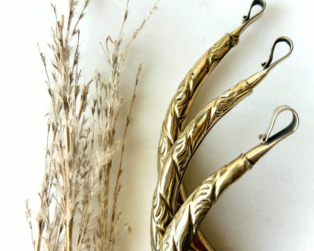A bold, hand engraved brass choker with a twisted leaf inspired texture. Designed to sit beautifully on the neckline and elevate both minimalist and statement jewelry designs. Wear them layered or individually for a statement look.