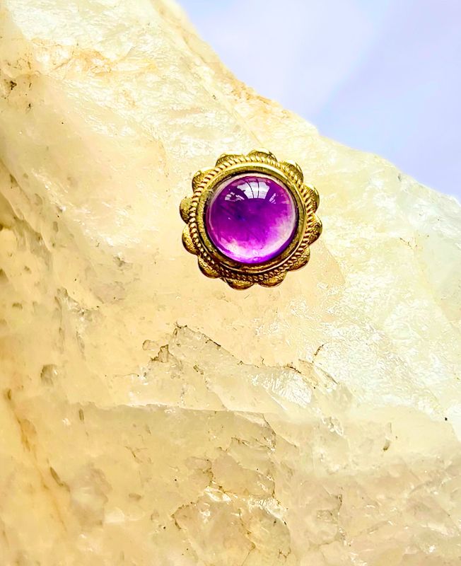- Materials: Brass alloy base, natural/dyed gemstone