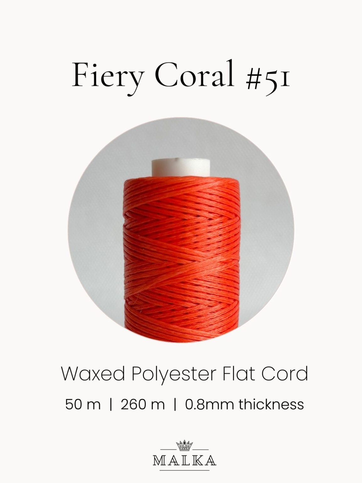 🧵 0.8mm Fiery Coral Waxed Macrame Cord – No 51