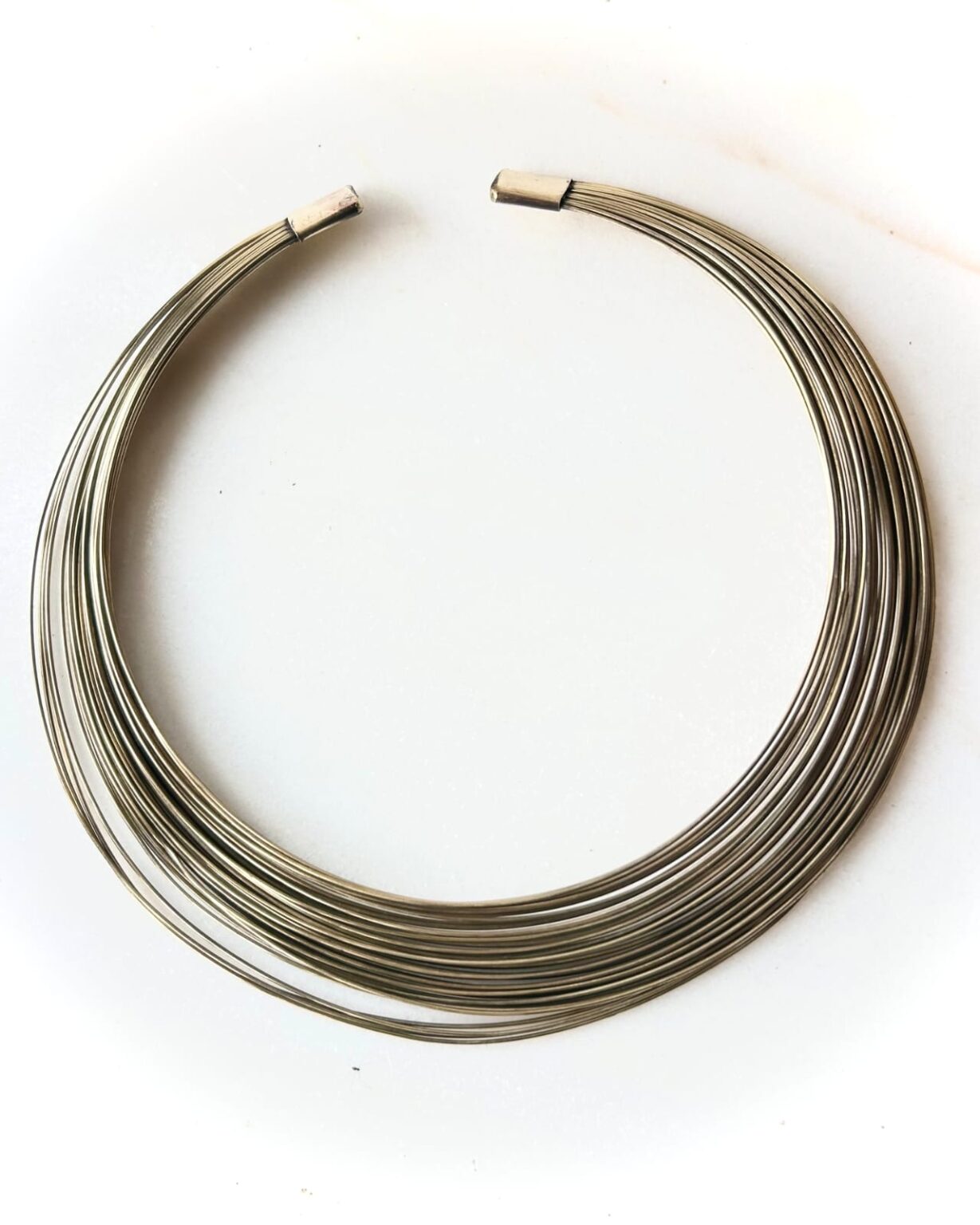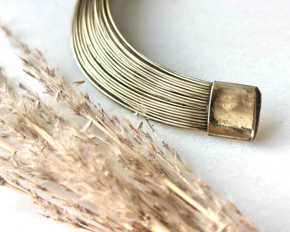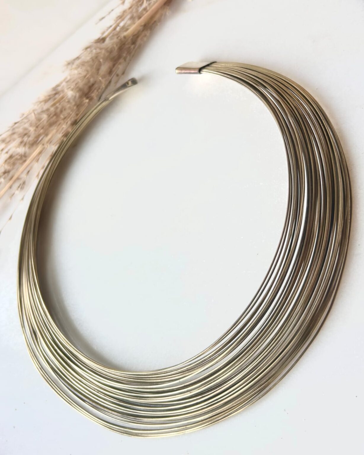 A bold yet refined brass choker made from multiple fine wires layered into a smooth, sculptural curve. Designed to make a strong statement while remaining comfortable and wearable.