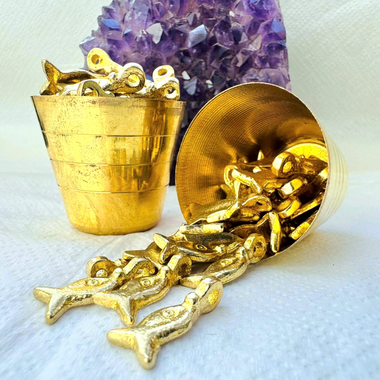 These small fish-shaped brass charms feature a simple, organic silhouette with subtle detailing and a warm gold-tone finish. Their minimalist design makes them easy to incorporate into a wide range of jewelry styles, from playful and coastal to boho and symbolic.