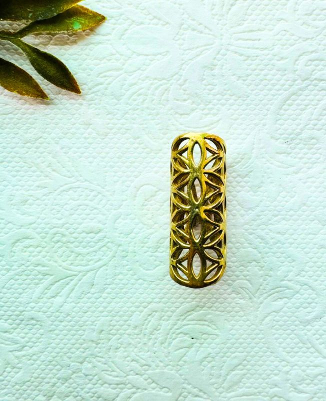 Brass dreadlock bead featuring a continuous, rhythmic openwork pattern of repeating oval or petal shapes and perfect for dreadlocks, braids, or beards.