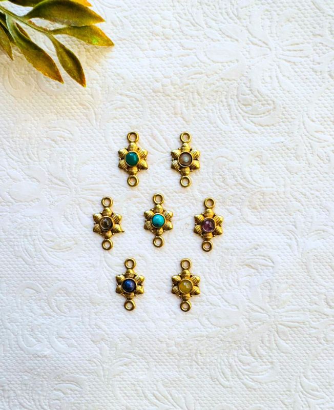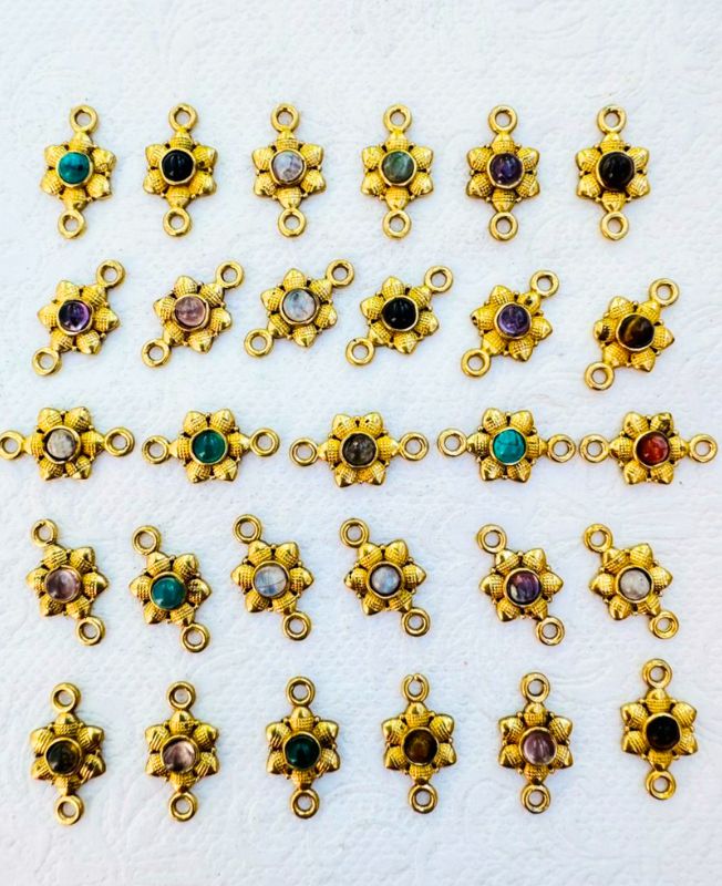 Handcrafted in India from solid brass, these connectors offer an authentic, artisanal touch while remaining durable and lightweight. Perfect for boho-style and ethnic jewelry projects, they combine traditional craftsmanship with natural gemstone charm.