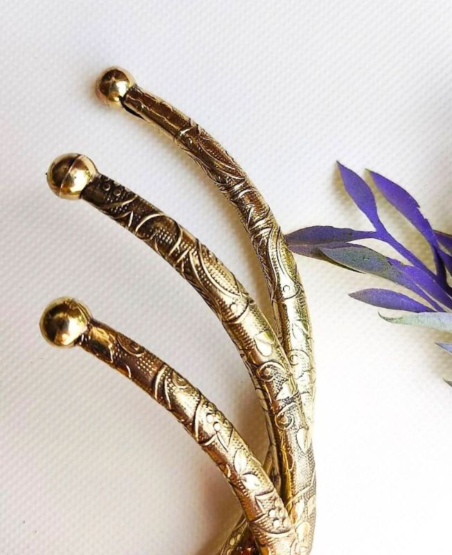 This unique choker set includes three handcrafted brass pieces, each adorned with a combination of geometric and tribal-inspired etchings. The patterns create a bold, structured look that blends traditional design with a contemporary edge. Rounded tips and a smooth finish ensure a comfortable fit around the neck.