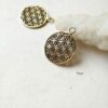 A delicately crafted brass pendant showcasing the sacred Flower of Life pattern. Ideal for spiritual jewelry, healing art, or meaningful macrame accents