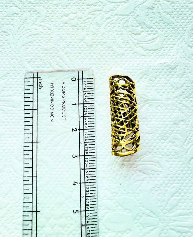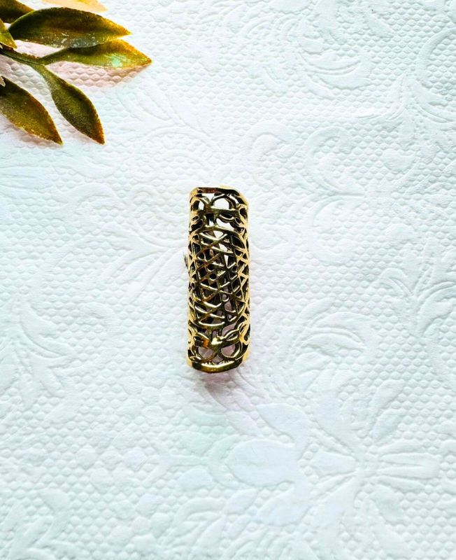 Handcrafted Brass Dreadlock Cuff with Intricate Lattice Web Design Hair Accessory