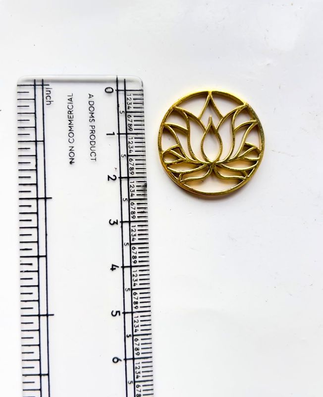 This elegant gold-tone charm showcases a beautifully symmetrical lotus flower framed within a smooth round border. The openwork design brings lightness and refinement, making it a versatile addition to spiritual jewelry, macramé, scrapbooks or altar decor. The lotus motif, rich in symbolism, represents purity, growth and enlightenment across many cultures.