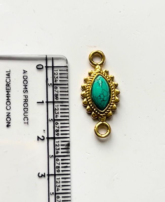 This beautiful marquise gemstone connector features a hand-cut stone securely set in an ornate brass frame with a beaded edge. The shape and double loops make it perfect for adding to necklaces, bracelets, or even statement earrings. Each connector offers a polished look that blends vintage charm with modern minimalism.
