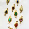 This beautiful marquise gemstone connector features a hand-cut stone securely set in an ornate brass frame with a beaded edge. The shape and double loops make it perfect for adding to necklaces, bracelets, or even statement earrings. Each connector offers a polished look that blends vintage charm with modern minimalism.