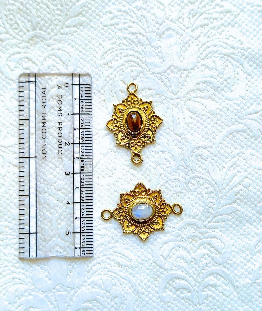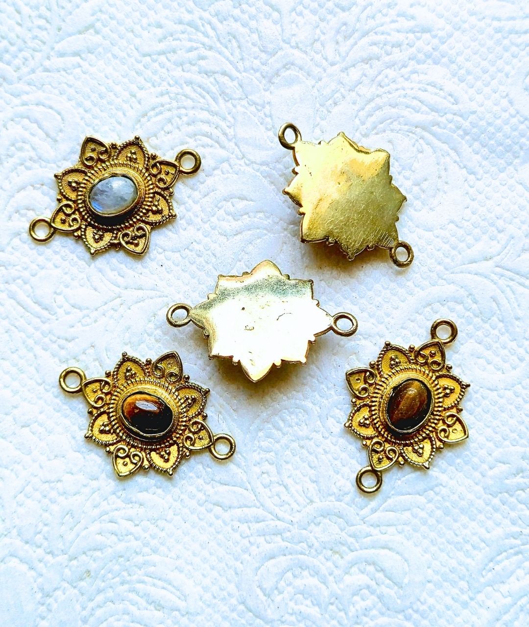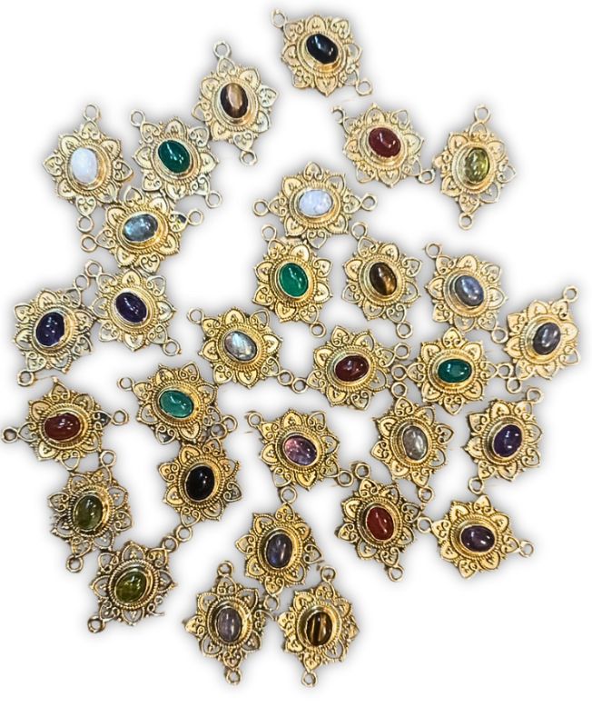 Set of premium brass connectors with real gemstone centers – perfect for jewelry and macrame projects.