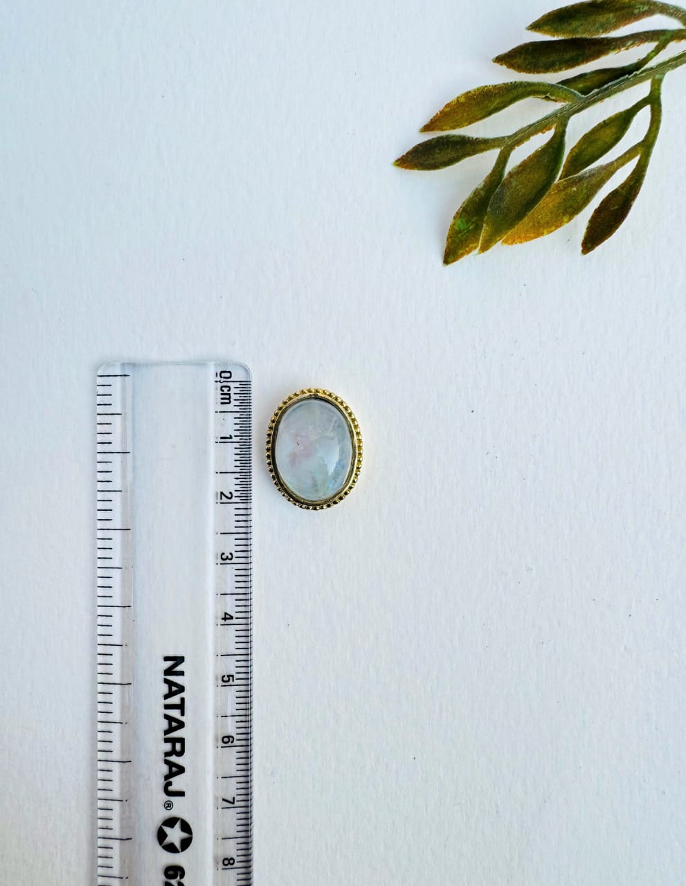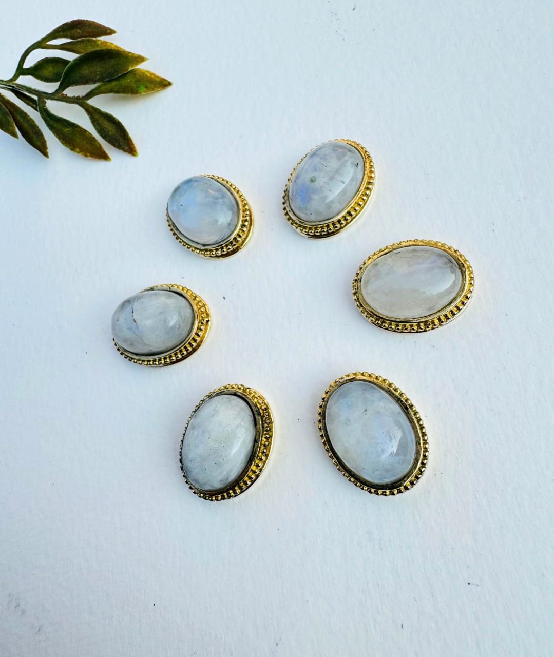 Elegant Moonstone brass gold toned settings with fine grooved edges, featuring natural Moonstone stone