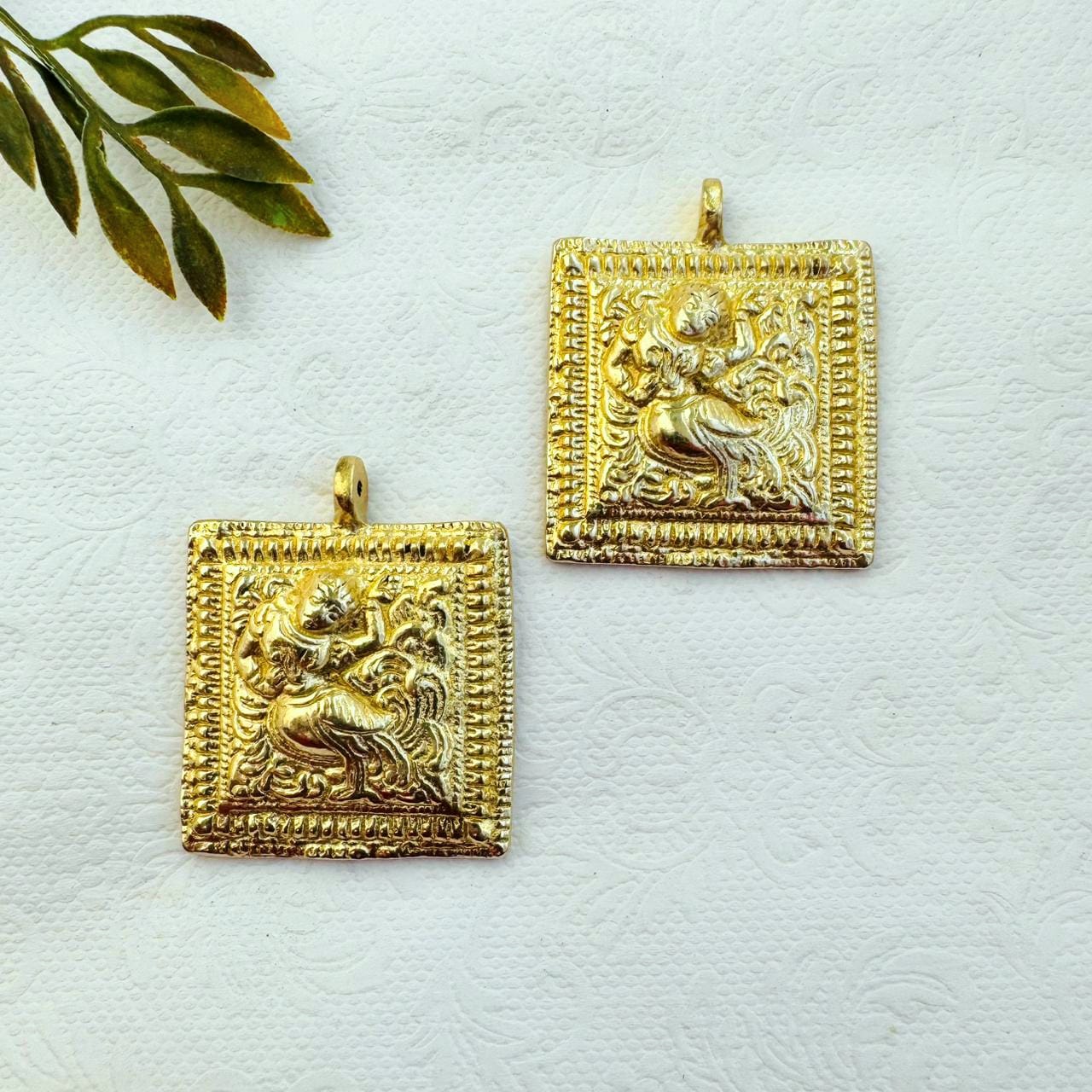 Ideal for bold jewelry, necklaces, and unique accessories. A handcrafted pendant with a a raised mythical figure framed with a textured border. Part of our exclusive collection of ethnic brass pendant, perfect for jewelry making, macrame, and creative projects.
