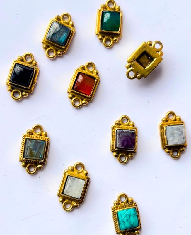 Their bold geometric silhouette and compact size make them perfect for statement earrings, stacked bracelets, or accent pieces in necklaces. Whether you’re designing minimalist chic or vintage-inspired collections, these multicolour connectors add a timeless, luxurious charm.