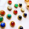 A stunning collection of round brass grooved set stones, perfect for micro macrame, wire wrapping, or handcrafted jewellery. Each cabochon features a grooved brass border with a smooth, polished gemstone center—adding rich colour and vintage charm to your designs.