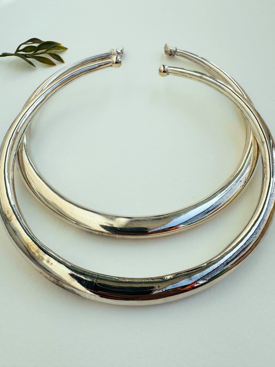 This refined choker set includes three handcrafted brass pieces, each designed with a clean, minimalist silhouette and a smooth polished surface. The high shine finish gives the set a modern, elegant look, while the rounded ball ends provide both comfort and a secure fit around the neck.