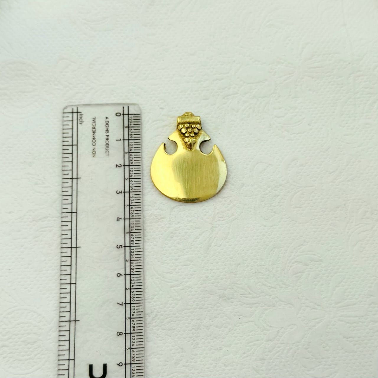 Ideal for bold jewelry, necklaces, and unique accessories. A handcrafted pendant with a smooth, brushed round body and a decorative textured top. Part of our exclusive collection of ethnic brass pendant, perfect for jewelry making, macrame, and creative projects.