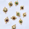 Radiant brass connectors with colorful round stones set in a blooming flower design, ideal for earrings, necklaces or boho chic bracelets.